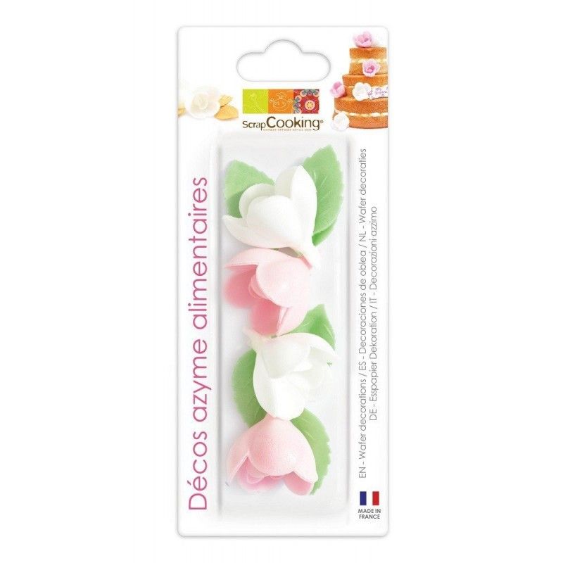 Plus d'informationsLes décorations azyme rose & feuille assorties x10 ScrapCooking sont indispensables pour décorer vos gâteaux, cupcakes, pièces montées et toutes autres gourmandises. Grâce à ces décorations en forme de Rose, vous pourrez réaliser des gâteaux élégants d'anniversaire, de mariage ou lors d'autres évènements. Vous n'aurez plus qu'à vous lancer dans la préparation de vos gâteaux pour impressionner vos amis et votre famille ! Vous aurez 4 roses (2 rose et 2 blanche) et 6 feuilles vertes.